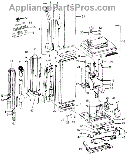 Parts for Hoover U4655930: 02 - Mainbody, Handle, Outerbag Parts