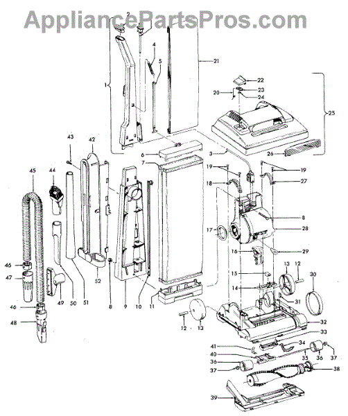 Parts for Hoover U4681910: 02 - Mainbody, Handle, Outerbag Parts