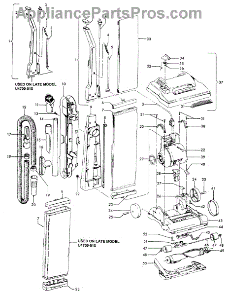 Parts for Hoover U4709910: 02 - Mainbody, Handle, Outerbag Parts