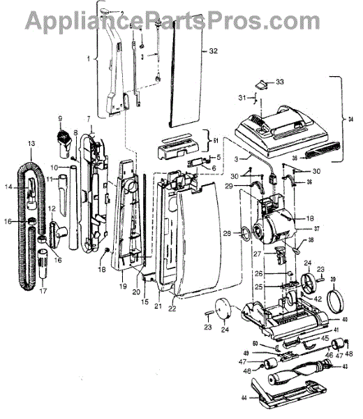 Parts for Hoover U5081930: 02 - Mainbody, Handle, Outerbag Parts