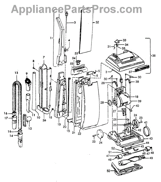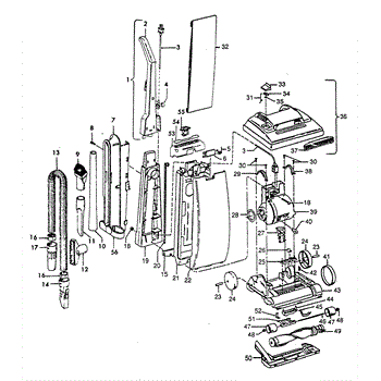 Parts for Hoover U5094930: 02 - Mainbody, Handle, Outerbag Parts