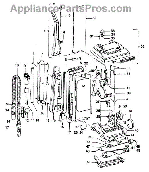 Parts for Hoover U5097930: 02 - Mainbody, Handle, Outerbag Parts