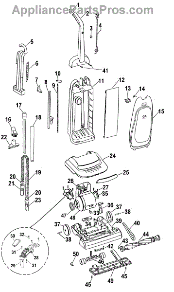 Parts for Hoover U5160900: 02 - Mainbody, Handle, Outerbag Parts