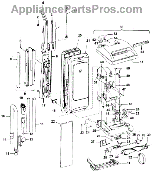 Parts for Hoover U5201930: 02 - Mainbody, Handle, Outerbag Parts