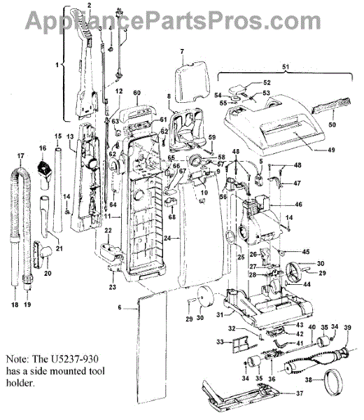 Parts for Hoover U5237930: 02 - Mainbody, Handle, Outerbag Parts