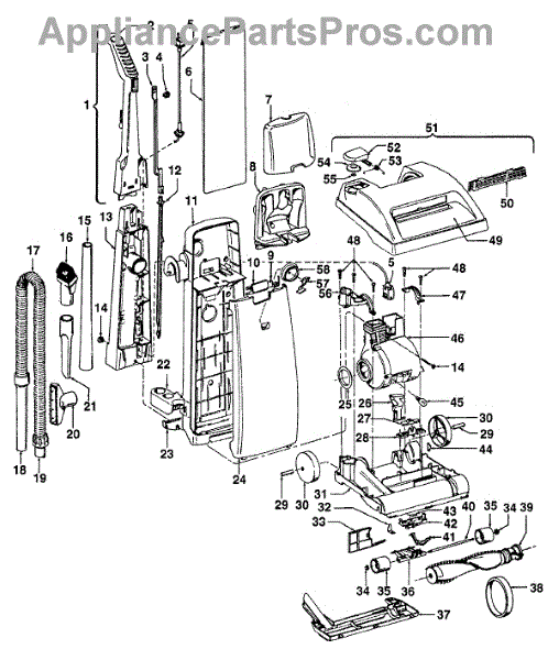Parts for Hoover U5239930: 02 - Mainbody, Handle, Outerbag Parts