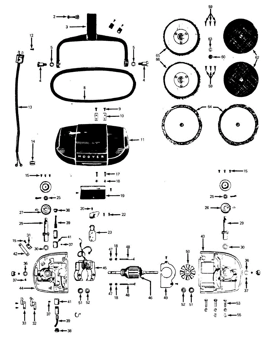 Parts for Hoover 021: 02 - Motor Assembly, Brushes_Pads, Hood Parts
