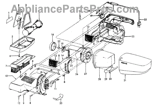 Parts for Hoover S1137980: 02 - Motor Assembly, Motorhousing Parts