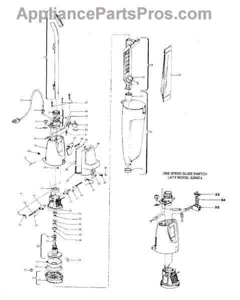 Parts for Hoover S2043---: 02 - Motor Assembly, Bag & Motorhousing Parts