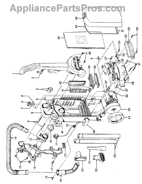 Parts for Hoover U5393900: 02 - Motor, Cleaningtools, Handle, Outerbag Parts