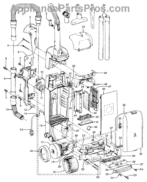 Parts for Hoover U5443900: 02 - Motor, Cleaningtools, Handle, Outerbag Parts