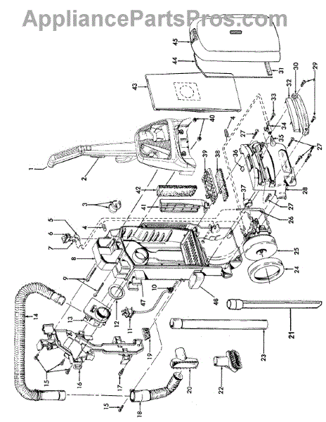 Parts for Hoover U5444900: 02 - Motor, Cleaningtools, Handle, Outerbag Parts