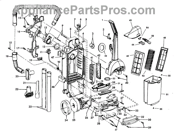 Parts for Hoover U5150900: 02 - Motor, Handle, Hose, Outerbag Parts