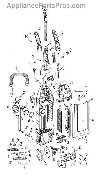Parts for Hoover U6441940: 02 - Motor, Handle, Hose, Baghousing Parts
