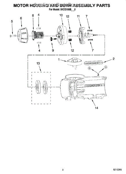 Parts for Whirlpool 5KCG100BOB0: 02 - Motor Housing And Burr Assembly Parts