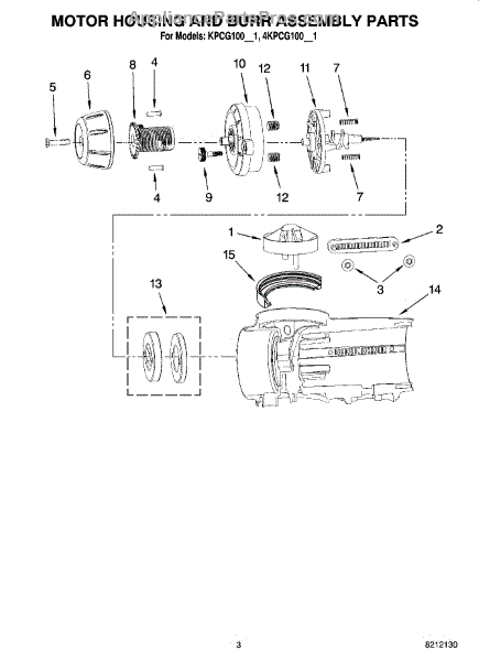 Parts for Kitchenaid KPCG100ER1: 02 - Motor Housing And Burr Assembly Parts