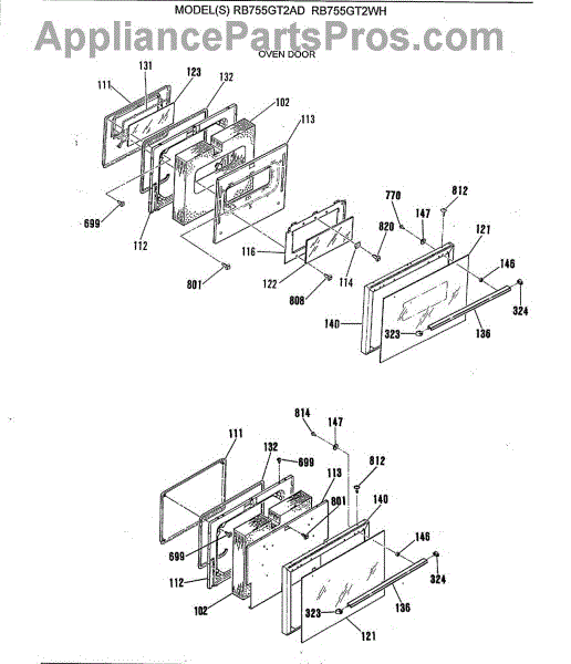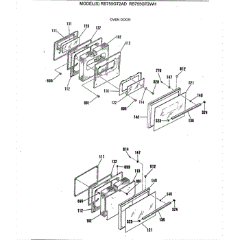 Parts for Ge RB755GT2AD: 02 - Oven Door Parts
