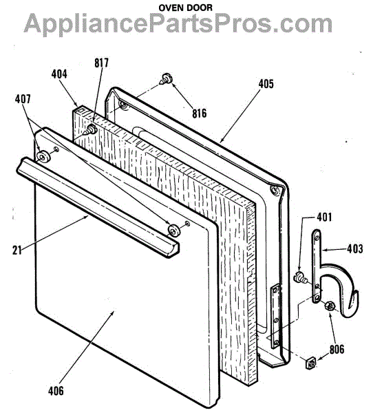 Parts for Ge RGA512PK1: 02 - Oven Door Parts