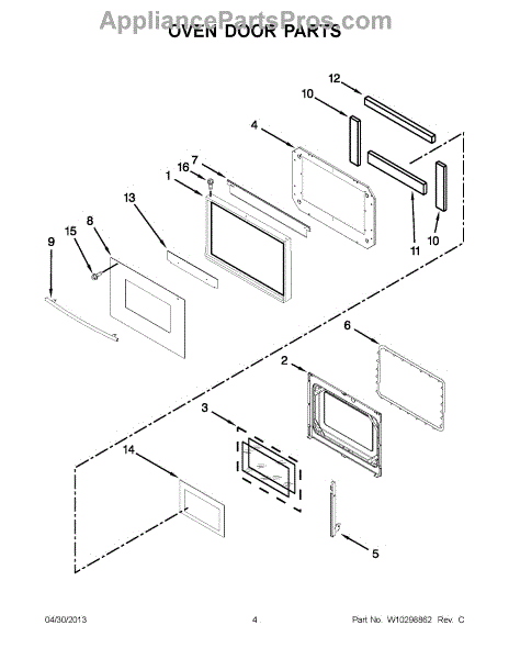 The Oven Door Hinge is an OEM part for Whirlpool wall ovens and ranges. Located on both sides of the oven door frame, these metal hinges provide the pivoting connection that allows smooth opening and closing of the door during cooking cycles. Causes of failure can include wear of the hinge joints from repeatedly bearing the weight of the heavy oven door over thousands of uses. Exposure to high heat during cooking may gradually deteriorate lubricating grease or materials. Symptoms of faulty hinges include: