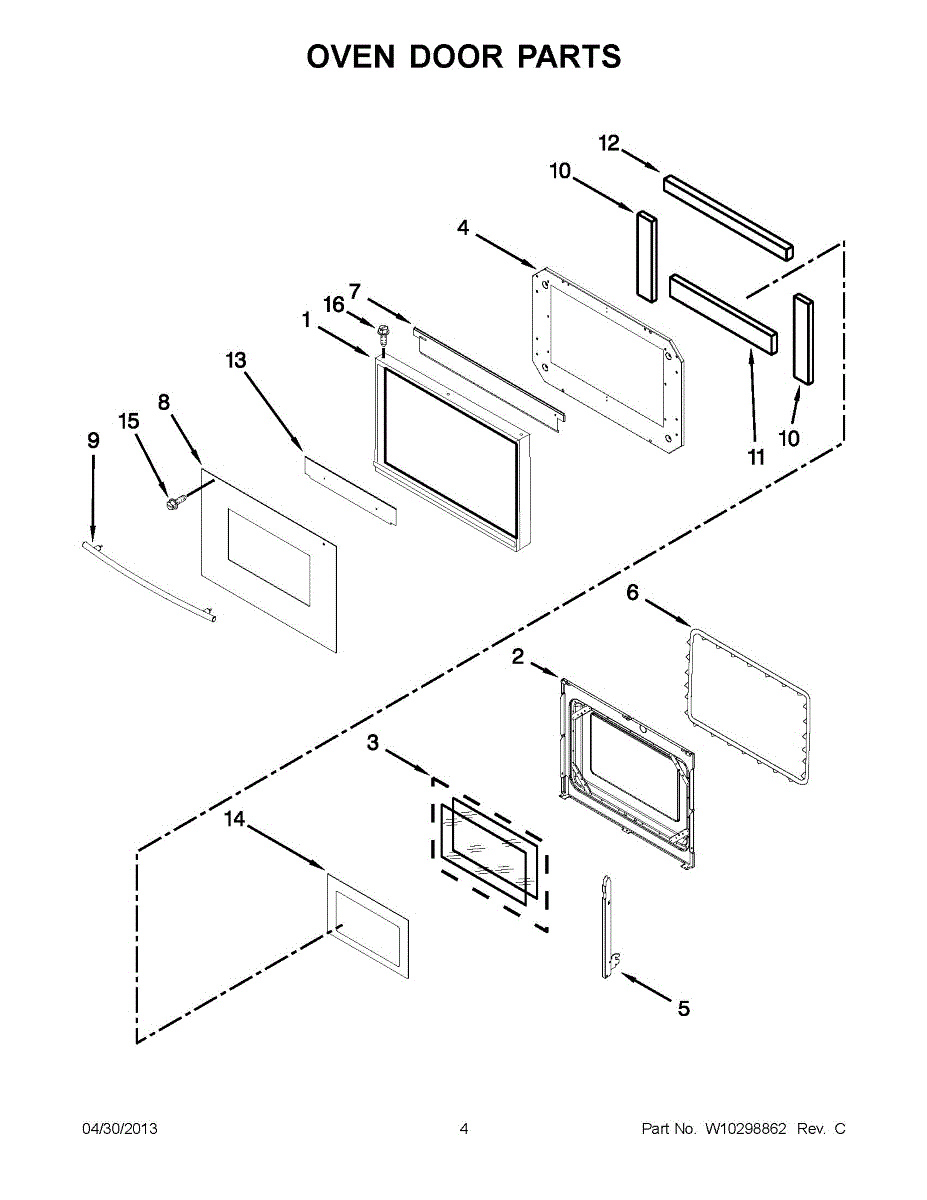 The Oven Door Hinge is an OEM part for Whirlpool wall ovens and ranges. Located on both sides of the oven door frame, these metal hinges provide the pivoting connection that allows smooth opening and closing of the door during cooking cycles. Causes of failure can include wear of the hinge joints from repeatedly bearing the weight of the heavy oven door over thousands of uses. Exposure to high heat during cooking may gradually deteriorate lubricating grease or materials. Symptoms of faulty hinges include: