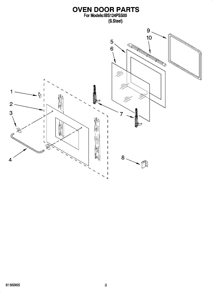 Parts for Whirlpool IBS124PSS00: 02 - Oven Door Parts