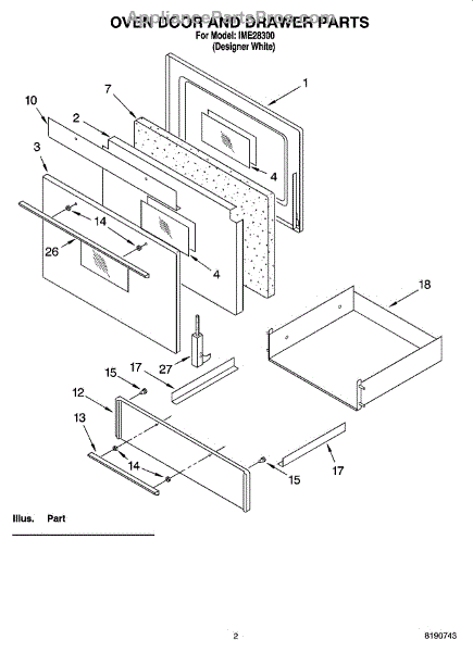 Parts for Whirlpool IME28300: 02 - Oven Door And Drawer Parts