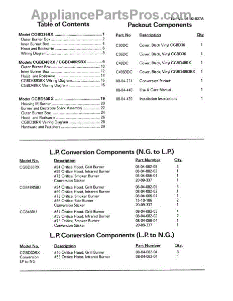 Parts for Thermador CGBD30RX: 02 - Packout / L.P. Conversion Parts