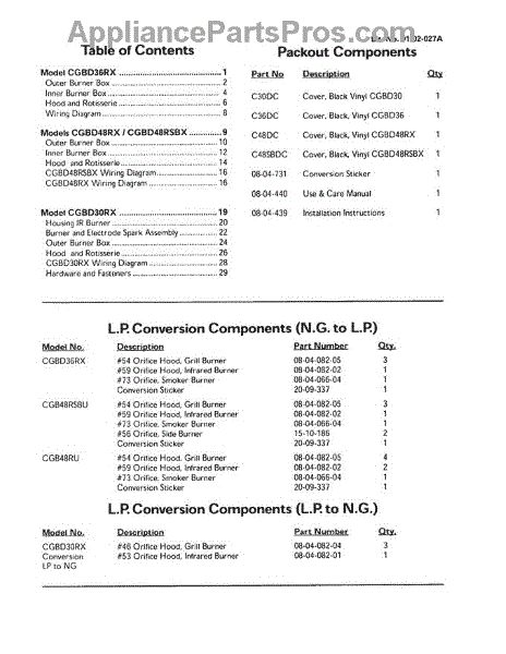 Parts for Thermador CGBD48RSBX: 02 - Packout / L.P. Conversion Parts