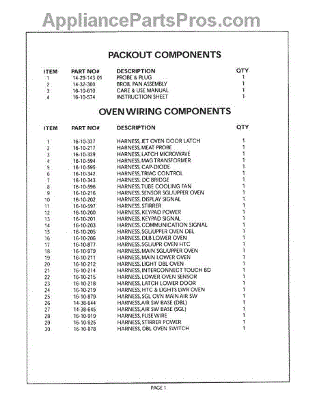 Parts for Thermador CM301W: 02 - Packout / Wiring Components Parts