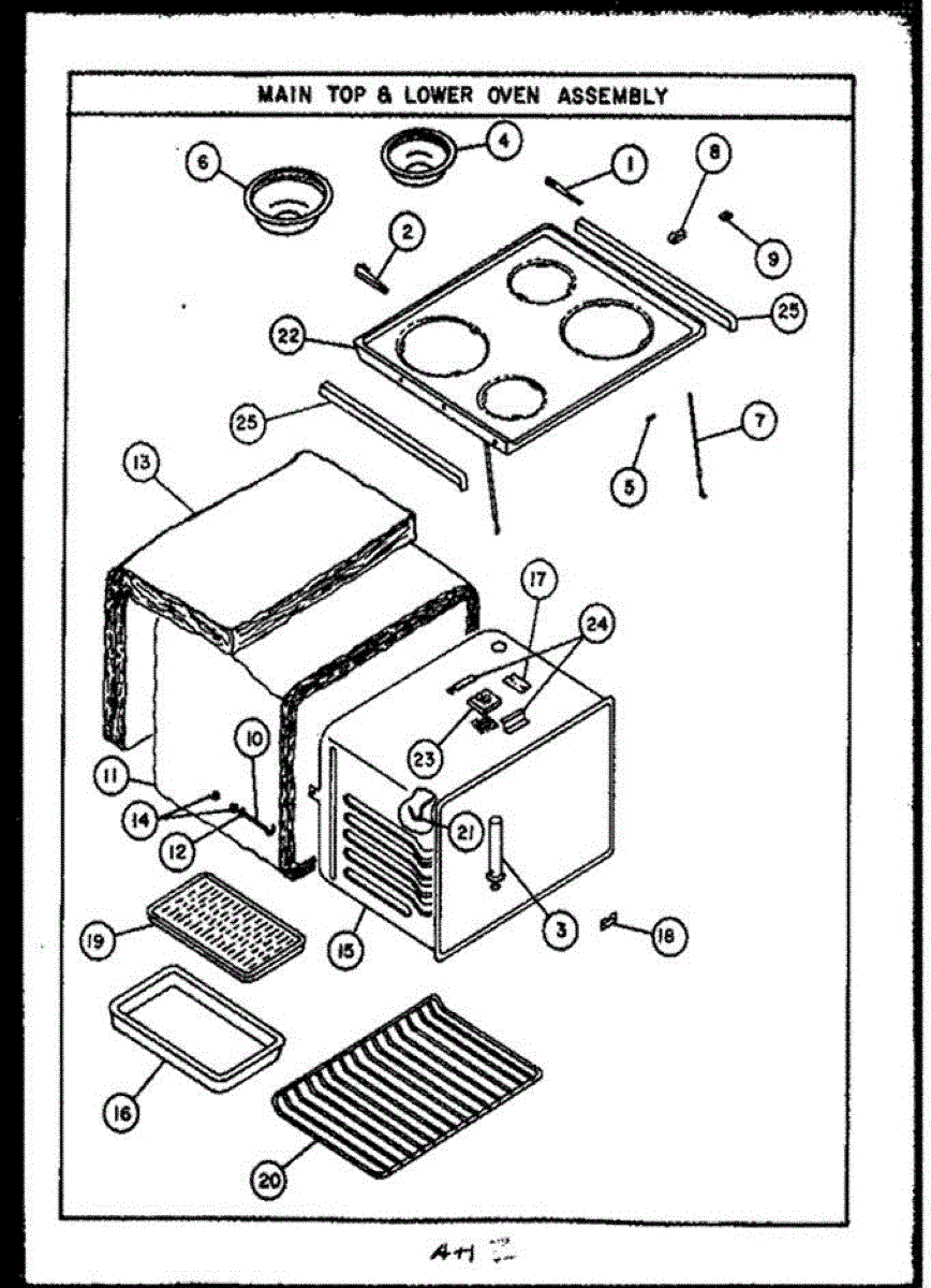 Shallow metal pan that sits below burner elements to catch grease and food spills. Replace when cracked, rusted, discolored, or warped for easier cleanup.