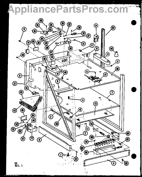 This factory screw secures appliance components to their mounting points. Replace missing, worn, or stripped hardware to restore a tight fit, proper alignment, and quieter operation across the affected assembly.