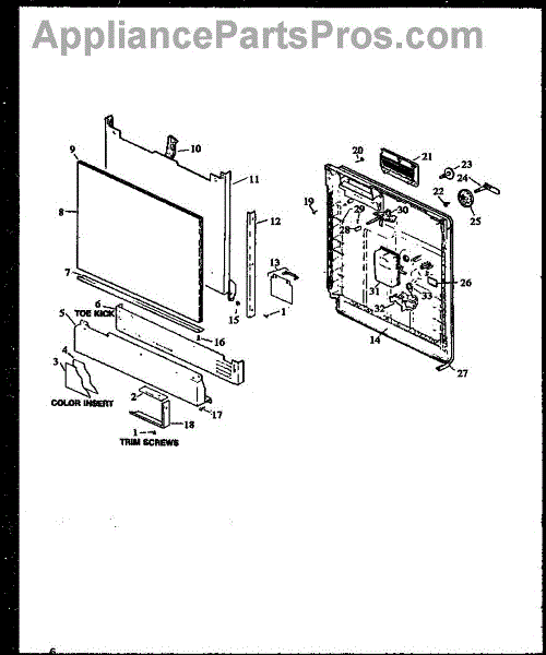This factory screw secures appliance components to their mounting points. Replace missing, worn, or stripped hardware to restore a tight fit, proper alignment, and quieter operation across the affected assembly.