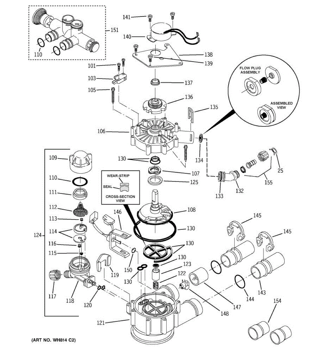 Fix water softener regeneration issues with this rotor and disc assembly. Restores proper cycling and water flow. Common repair for softeners not regenerating.