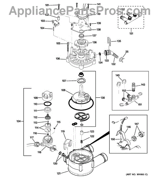 This is a genuine replacement water valve adapter that is used in models of water softeners and filters from General Electric. The valve adapter is a small part of the unit that helps provide the correct fit for the valve that turns the softener bypass on