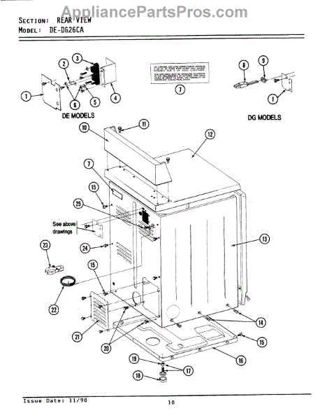 Parts for Maytag GDE26CA: 02 - Rear View - Ca Models Parts