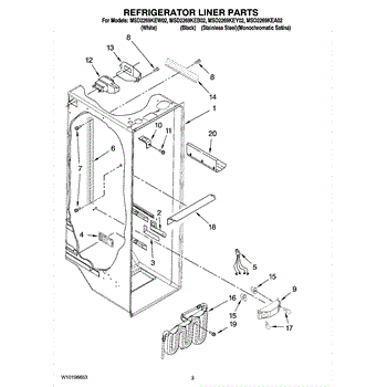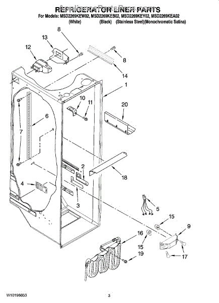 The Water Reservoir Tubing is an OEM replacement part for Whirlpool refrigerators. It is a flexible plastic tubing that replaces the water reservoir and holds the water for the ice maker and dispenser. Causes can include cracks from heat or cold exposure over time, punctures from sharp edges during installation, or deterioration of plastic tubing that impacts integrity. Symptoms of bad water reservoir tubing include: