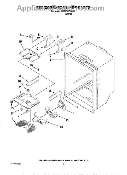 Parts for Whirlpool CB19G6W00W6: 02 - Refrigerator Liner Parts