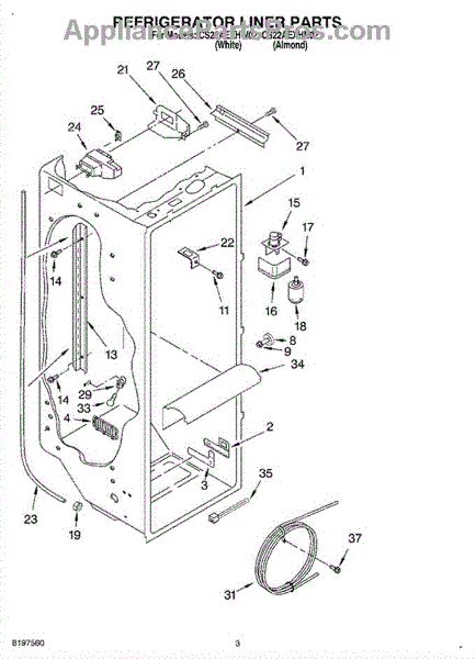 The Air Diffuser Assembly is an OEM part for Whirlpool refrigerators. It regulates the airflow between the refrigerator and freezer compartments, ensuring the proper distribution of cold air to maintain the desired temperatures in both sections.