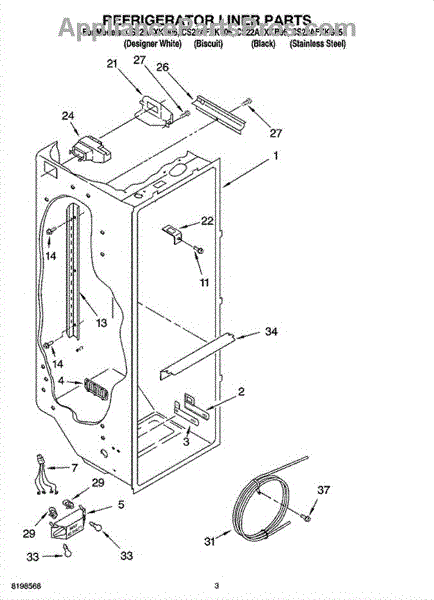 Parts for Whirlpool CS22AFXKS05: 02 - Refrigerator Liner Parts