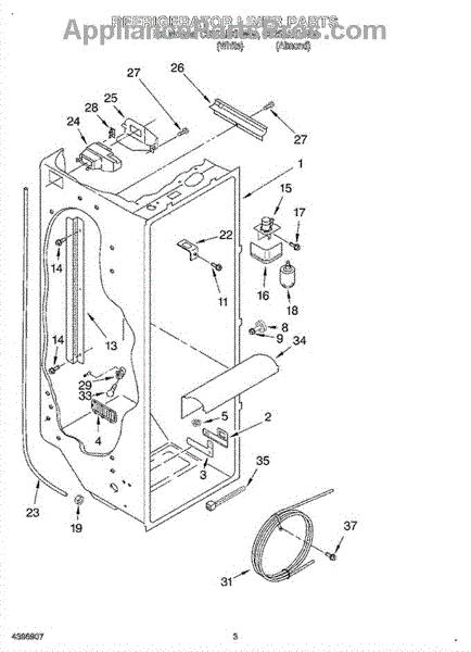 The Air Diffuser Assembly is an OEM part for Whirlpool refrigerators. It regulates the airflow between the refrigerator and freezer compartments, ensuring the proper distribution of cold air to maintain the desired temperatures in both sections.