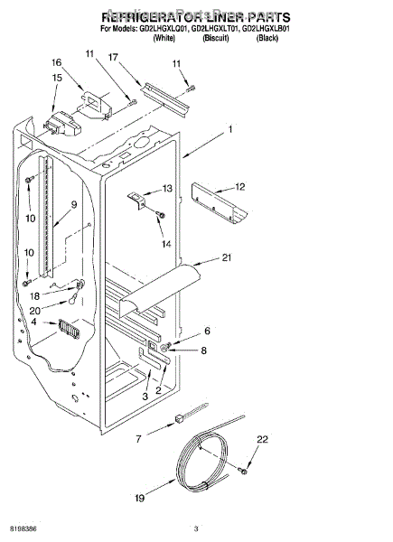 Parts for Whirlpool GD2LHGXLT01: 02 - Refrigerator Liner Parts
