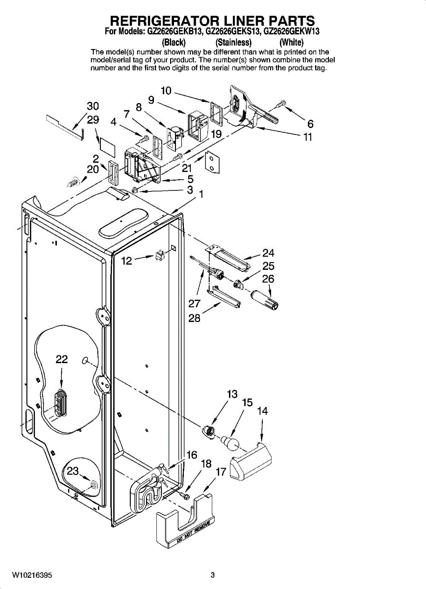 Parts for Whirlpool GZ2626GEKB13: 02 - Refrigerator Liner Parts