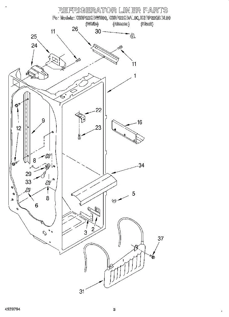 Parts for Kitchenaid KSRP22QDWH00: 02 - Refrigerator Liner Parts