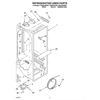 Parts for Whirlpool TS25AFXKS03: 02 - Refrigerator Liner Parts