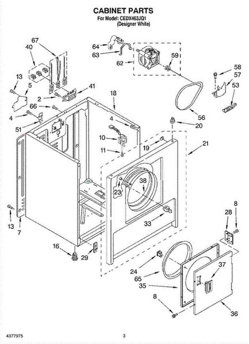 Dryer outer cabinet that houses internal components. Replace if your cabinet is rusted, dented, cracked, or damaged, compromising structural integrity.