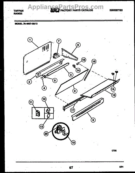 Parts for Frigidaire 76-4967-66-13: 02 - Splasher Control Parts