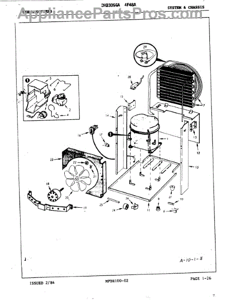 This factory screw secures appliance components to their mounting points. Replace missing, worn, or stripped hardware to restore a tight fit, proper alignment, and quieter operation across the affected assembly.