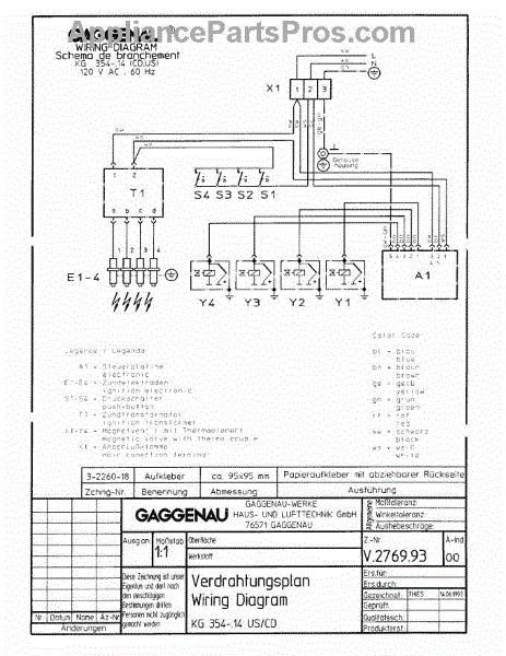 Parts for Gaggenau KG354-114: 02 - Tech Wiring Diagram Parts