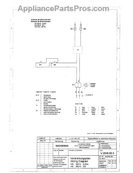 Parts for Gaggenau VG352-812: 02 - Tech Wiring Diagram Parts