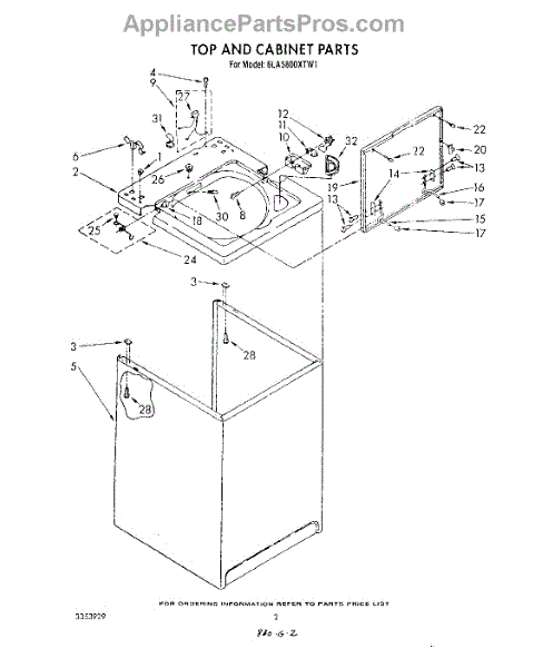 Parts for Whirlpool 6LA5800XTN1: 02 - Top And Cabinet , Literature And Optional Parts